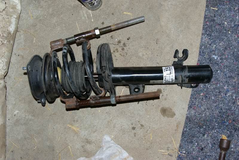 (Bild 5: Ausgebautes Federbein mit gespannter Feder)