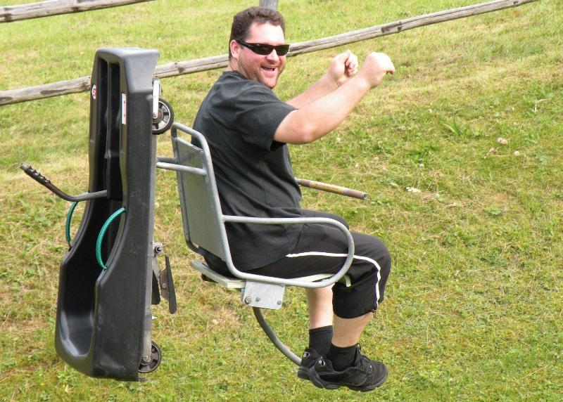 Ein durch die unordentlich geparkte Öffentlichkeit verhindertes Foto-Shooting in St. Corona Püh!, bewegte uns zu einem spontanen Wechsel der fahrenden Untersätze     Da die Motorleistung dieser Gefährte ein wenig zu wünschen übrig lies und man einem MINI-Fahrer keine langen Fußmärsche zumuten kann (nicht zweimal hintereinander Mr. Orange) brachte uns ein Sessellift zur Startebene rund 130m höher.     Endlich Sitzen! Gery freute sich offensichtlich darauf, dass er Heute auch mal das Steuer übernehmen darf! Mr. Gulf Beim Präsidenten wissen wir, dass er sich immer auf Alles freut, was mit Geschwindigkeit zu tun hat!     Im Convoy, no-na, erklommen wir den Berg     , konnten schon Abschnitte der Strecke inspizieren     und genossen die Stille der Natur     die Gelegentlich von ein paar herzhaften Lachern unterbrochen wurde! Lol
