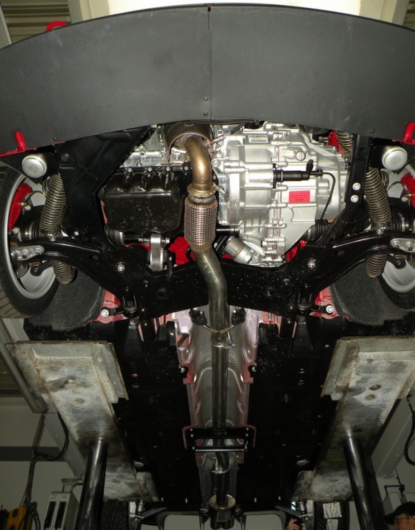 Ein Blick von hinten in den Innenraum, auf den massiven Käfig     Und dann musste er es sich noch gefallen lassen, in luftige Höhen gehoben zu werden.     Ein paar Details         Der Unterboden         und die kleinen Endröhrchen     beim ONE nicht viel anders Pfeifen Devil! Und weil aus Endrohren neben ein paar Gasen auch oft ein Ton rauskommt, hier ein klitzekleiner akustischer Vorgeschmack!