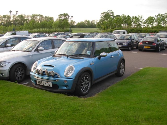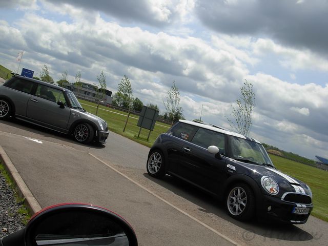 Sprotte, von der wir den Lokaltipp bekommen hatten, kam die Straße lang gefahren und stellte sich zu unseren MINIs dazu. Da Coop bei seiner frühmorgentlichen Anreise dreckig wurde (LKWs und Regenfahrbahn