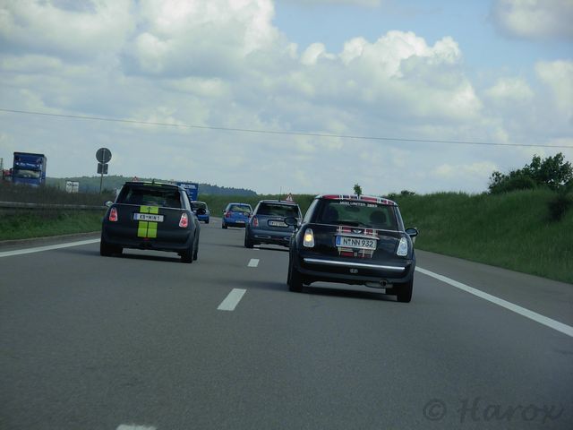 auf die Autobahn Richtung Nürnberg. Sprotte fühlte sich in Gesellschaft der österreichischen MINIs sichtlich wohl.
