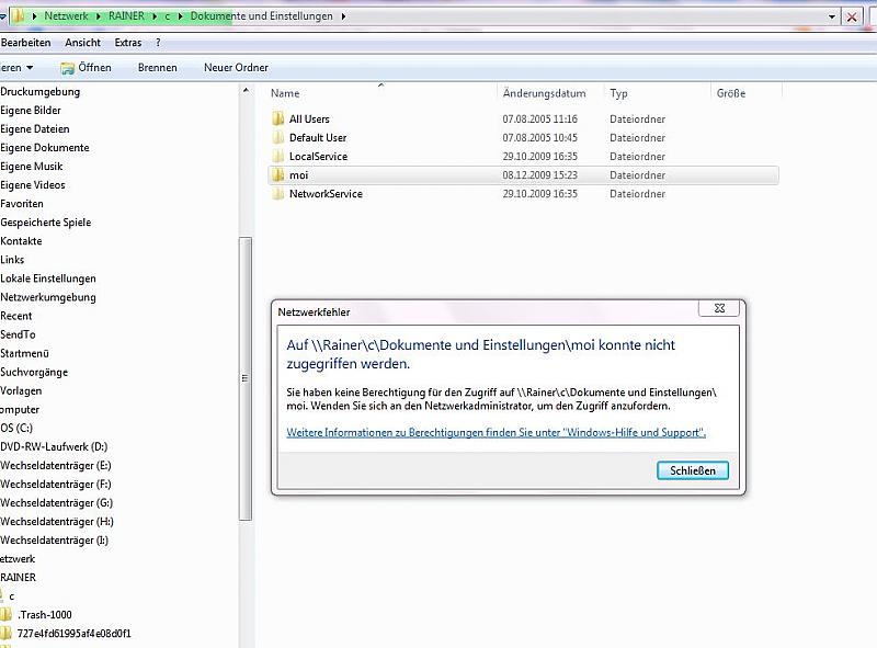 Edith sagt grad, dass ich auf C. nur auf "Dokumente und Einstellungen" nicht zugreifen kann. Rest geht, D: auch, da liegen z.B. mp3s....