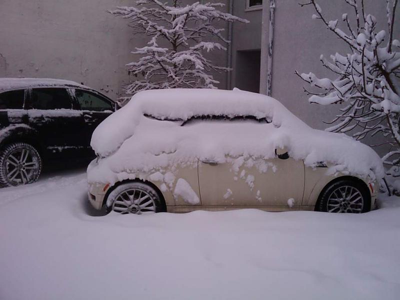 Wollte gerade meinen Mini freilegen. Da liegen ungefähr 20 cm drauf, seit gestern Abend 20 Uhr!