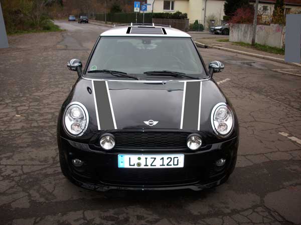 hab die weißen mal weggemacht und graue dahin gelegt, wo sie eigentlich hingehören - bekomm bloß die rundung der motorhaube nicht so richtig hin. auf dem dach ist die akkuanzeige Zwinkern