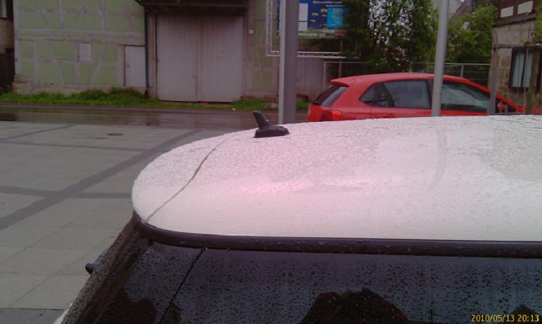 empfang leider nicht gut, daher nur als dummy montiert und die originalantenne samt fuß im dachhimmel versteckt. bisschen mit isoband zusätzlich abgedichtet (man kann ja nie wissen) und gut ist.