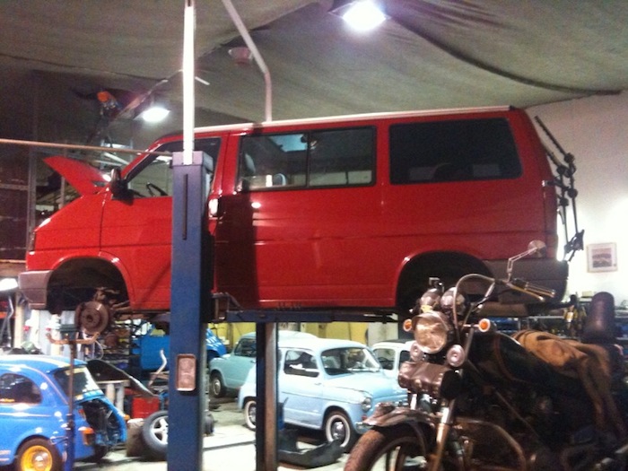 Bin wieder daheim. Uff. War von 9 (2100) bis halb 2 (0130) in der Werkstatt. Hab geholfen den VW T4 fertig zu machen. Neue Kupplung, neue Bremsen hinten, etc pp. Danach noch schnell ein Feierabendbier in der Stadt in der dreckigen Werkstattkluft und die lustigen Blicke genossen.