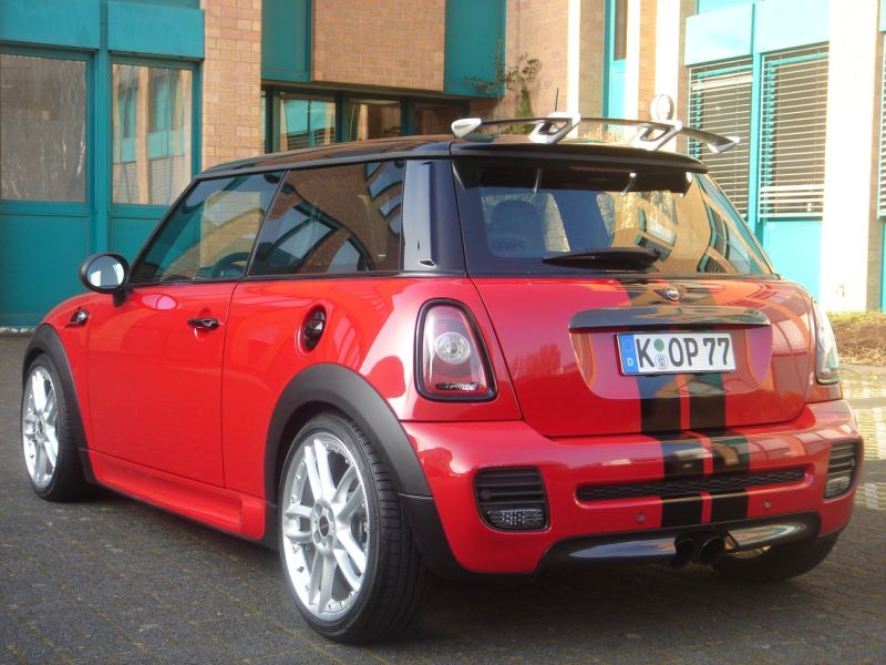 Nun ja, noch ist das ganze nicht zu Ende gedacht. Dein kleiner braucht jetzt noch eine schöne, sportliche schwarze Felge (OZ). Und der JCW Spielzeug Spoiler muss auch weg. Oder lass wenigstens die silbernen Teile auch schwärzen. Auf den Effekt wäre ich gespannt Top