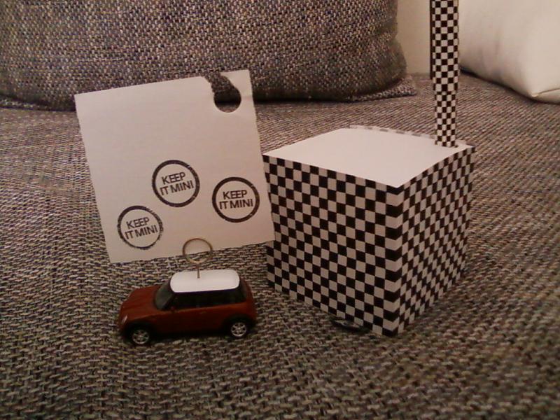 und als zweites nen zettelhalter im form eines r50 cooper.. passt super zu dem checkered flag notizblock der von mini angeboten wird Top