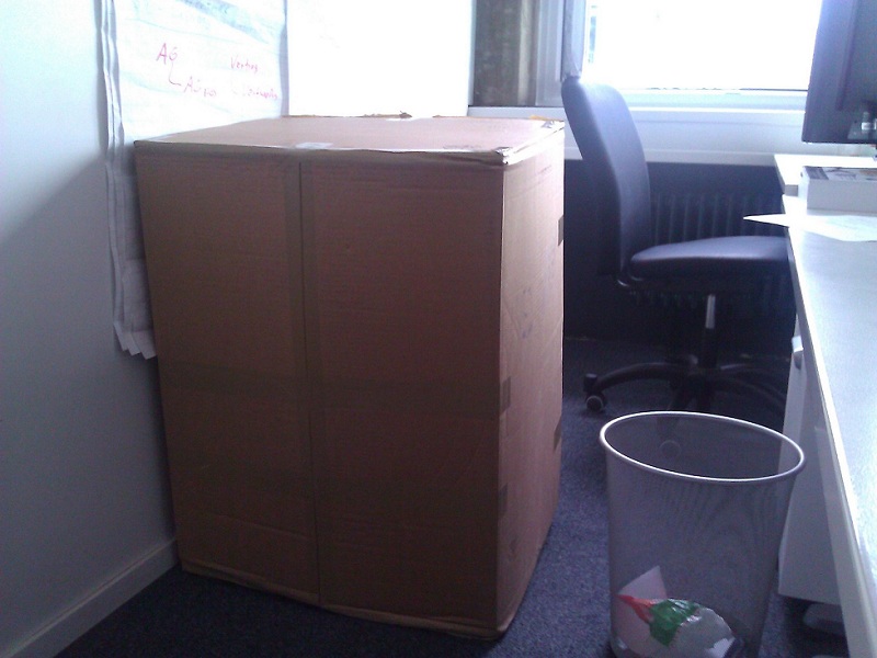 Eben kam ein Paket für mich in die Firma. Was da wohl drin ist? Kleiner Tipp: es ist groß, plüschig, sieht aus wie ein Tiger, und ist keine GPS-Kamera. Und es schreit "gebt mir Febreeeeeeeze!".