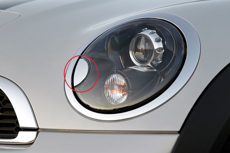 Also die Anlage befindet sich hinter der Chromabdeckung(das halbrunde Ding) am Scheinwerfer.