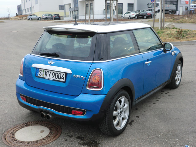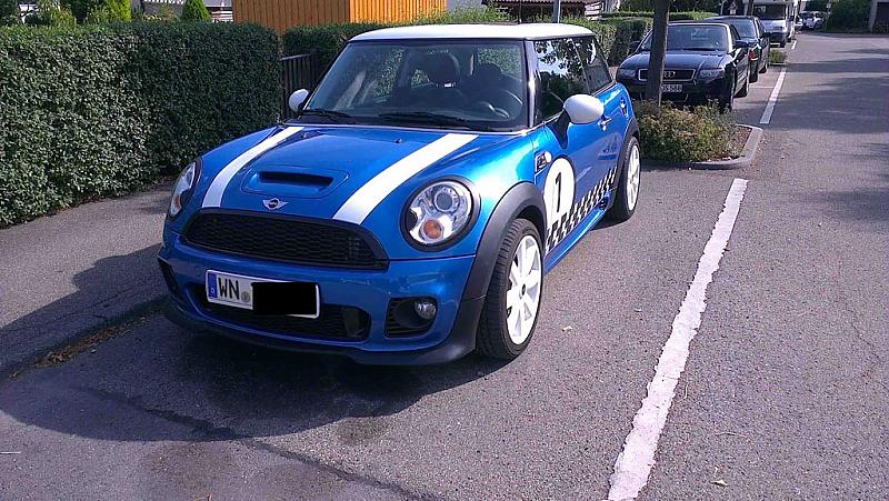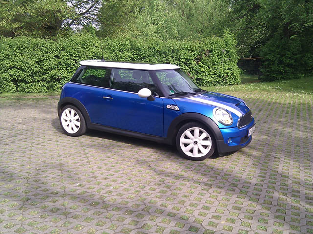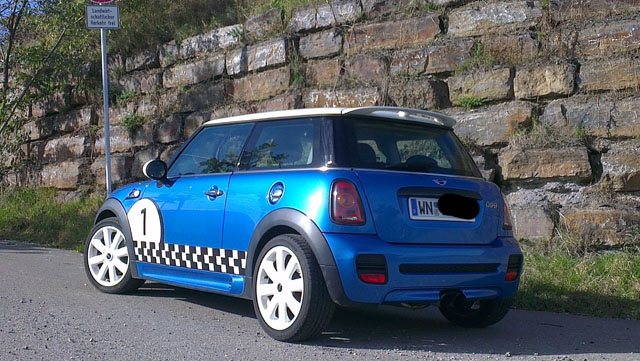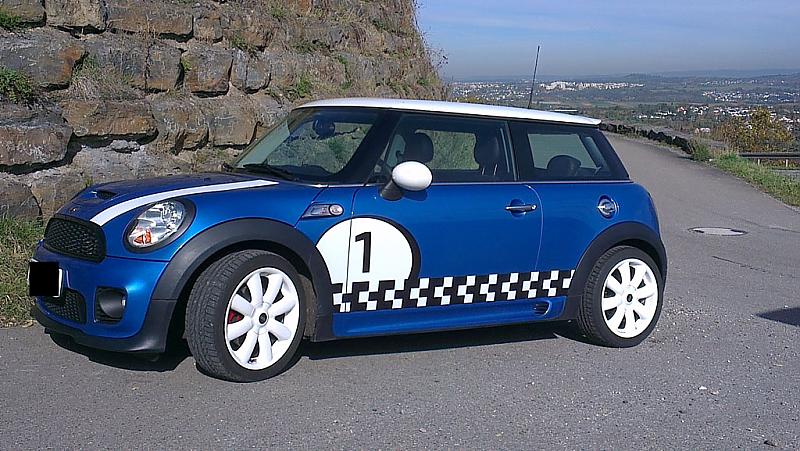 Es ist ein Mini Cooper S BJ 12/06 und sah am Anfang noch sehr "normal" aus. Das hat mir auf die Dauer nicht mehr gefallen und deshalb habe ich mich dran gemacht ein paar Umbauten vorzunehmen. Seht selbst: