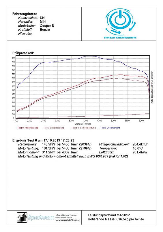 formars schrieb:Hallo, meiner war gestern auch auf den PrüfstandDa stimmt was nicht, der Unterschied zwischen Rad- und Motorleistung ist viel zu gering, da müssen mind. 30PS Unterschied sein. So einen guten Antriebsstrang gibt es gar nicht (nur 8% Verlust, üblich ist mind 15%).