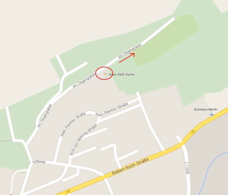 Ein kleiner Hinweis noch bezüglich parken. Direkt vor der Kloß-Küche sind nur fünf bis sechs Parkplätze vorhanden (je nachdem wie gut eingeparkt wird He He). Wer zu spät da ist muss den Weg noch paar Meter weiter fahren, Richtung Friedhof sind dann am Wegrand noch Parkplätze.
