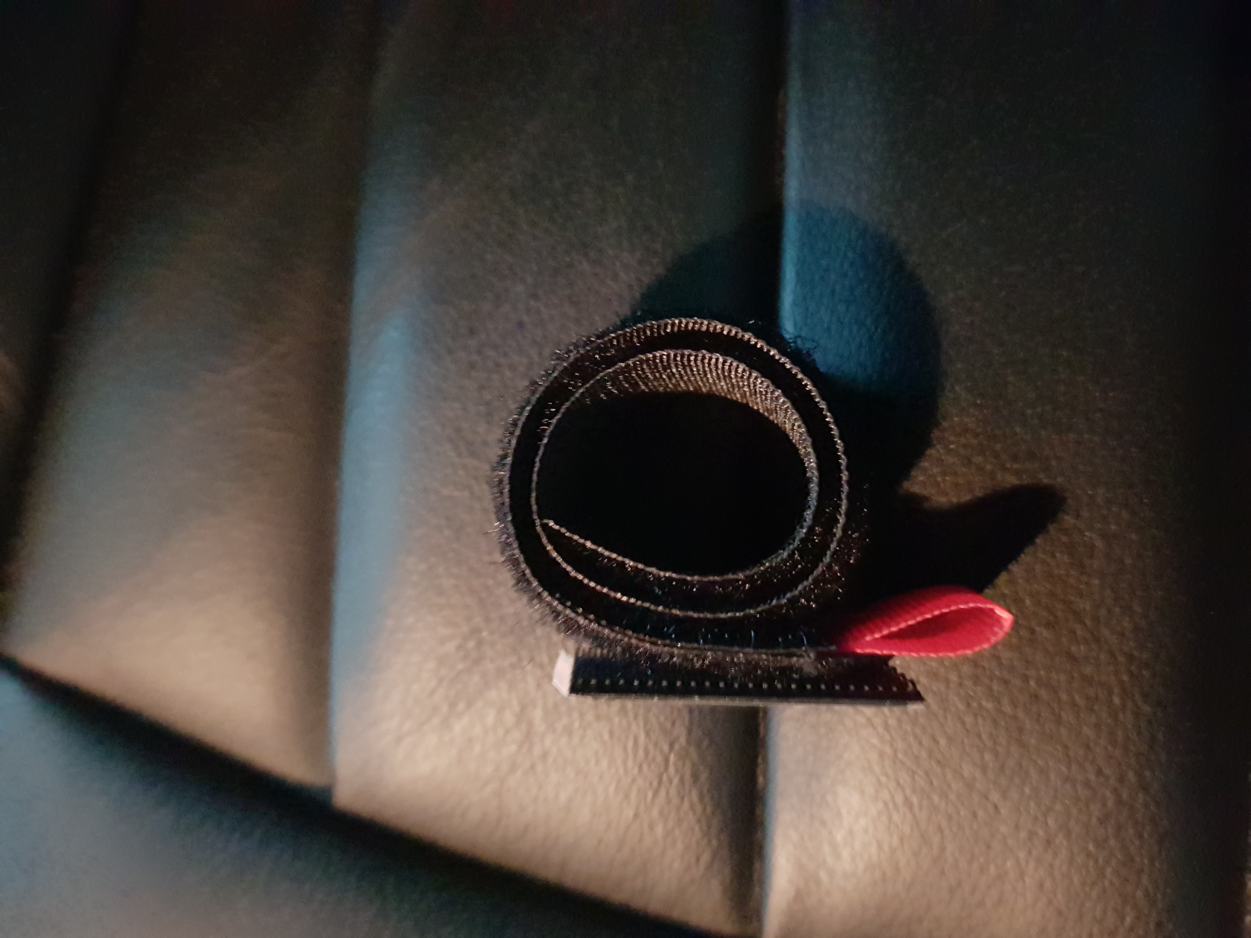 Das überschüssige Kabel habe ich mit so einem Klettkabelbinder und einem Stück selbstklebendem Klettband hinter der unteren Abdeckung befestigt.