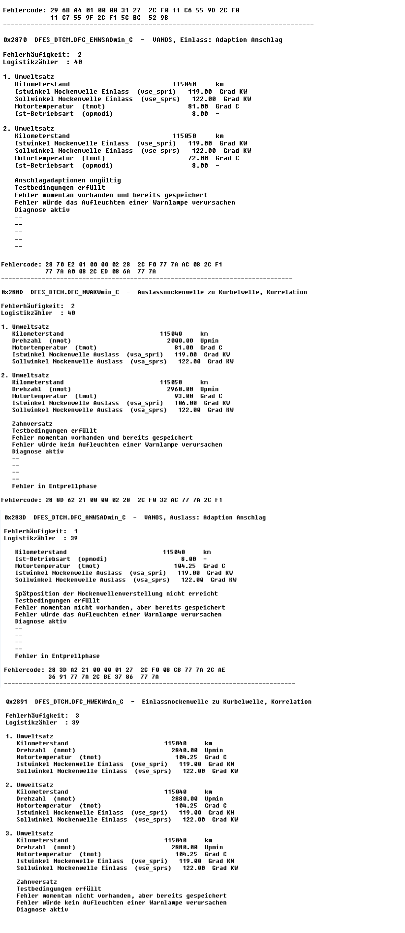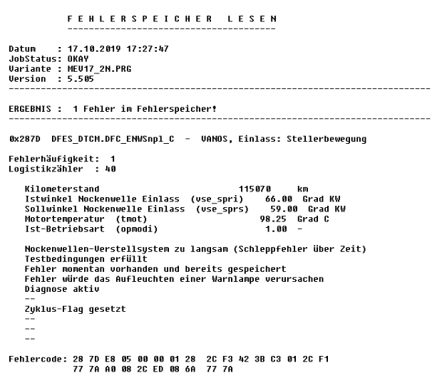Folge sind VANOS-Fehler.