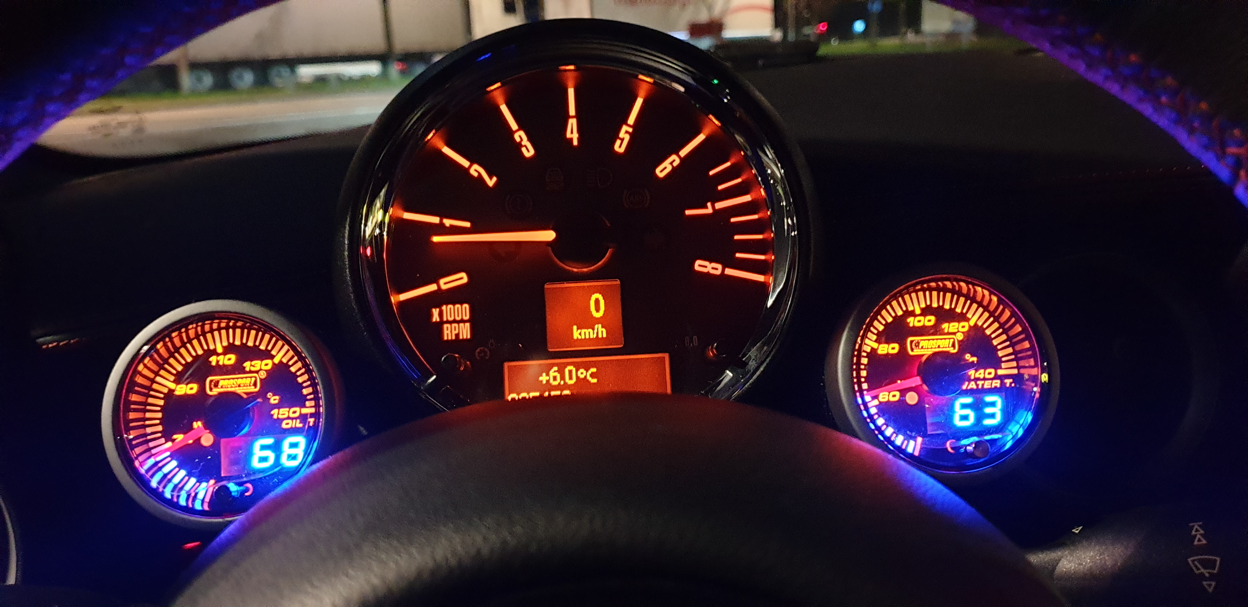 Hab mich schlussendlich für die 4 in 1 Anzeige von D-Racing entschieden. Großer Nachteil allerdings, dass das Instrument die für Mini Fahrer ungeliebte einbaugröße von 60 mm hat.