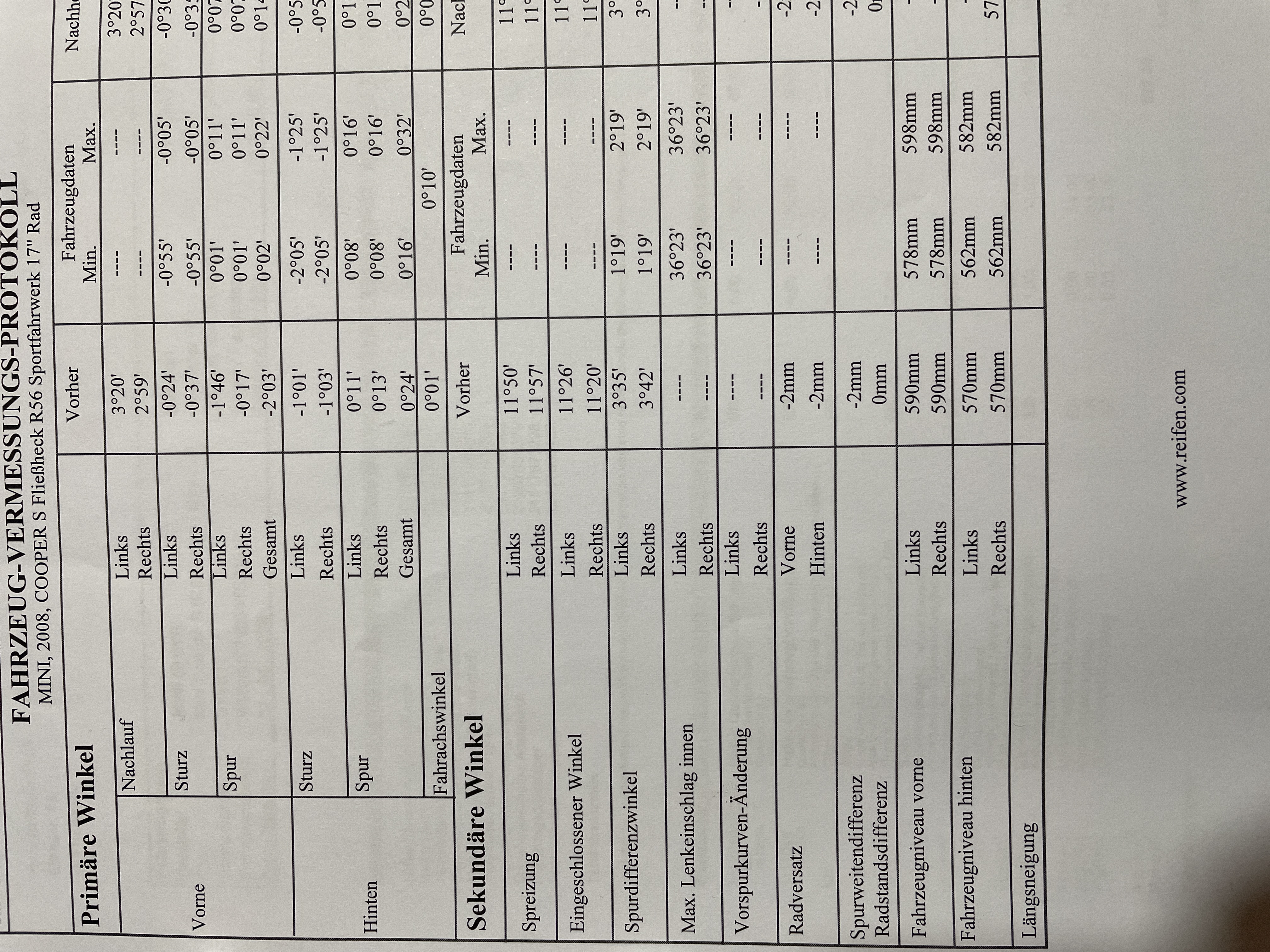 Einstellbedarf bestanden hat. Eine Gesamtnachspur von -2° dürfte das Auto