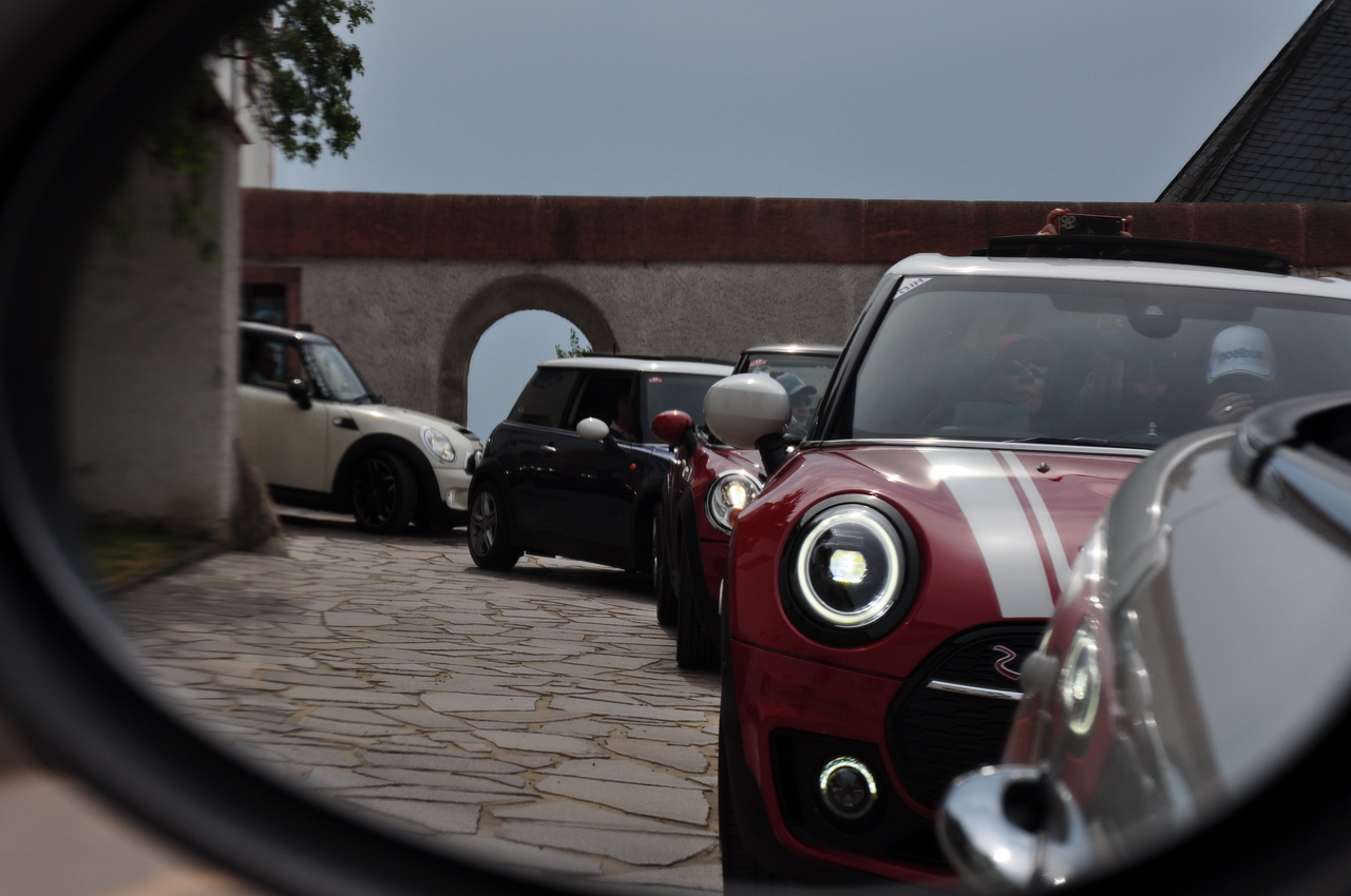 Zwei Vorbeifahrten der Kolonne gibt's auch als Videos, einstweilen nur mal auf der Facebookseite von MINI².info https://www.facebook.com/MINI2.info