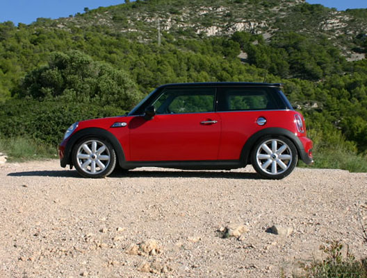 Irgendwie wirkt auf diesem Foto alles am neuen Mini viel klobiger (Blinker an den Seiten/Rücklichter/Auspuff/Heckschürzeneinsatz/Heckklappengriff) und nicht mehr so wohl proporzioniert