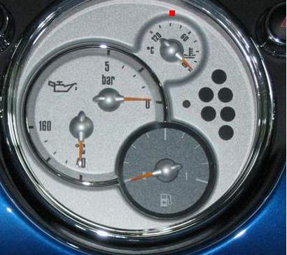 ich habe auch das cockpit chrono und bei mir steht der wassertemp.- anzeiger immer da, wo ich den roten punkt auf dem foto eingezeichnet habe!