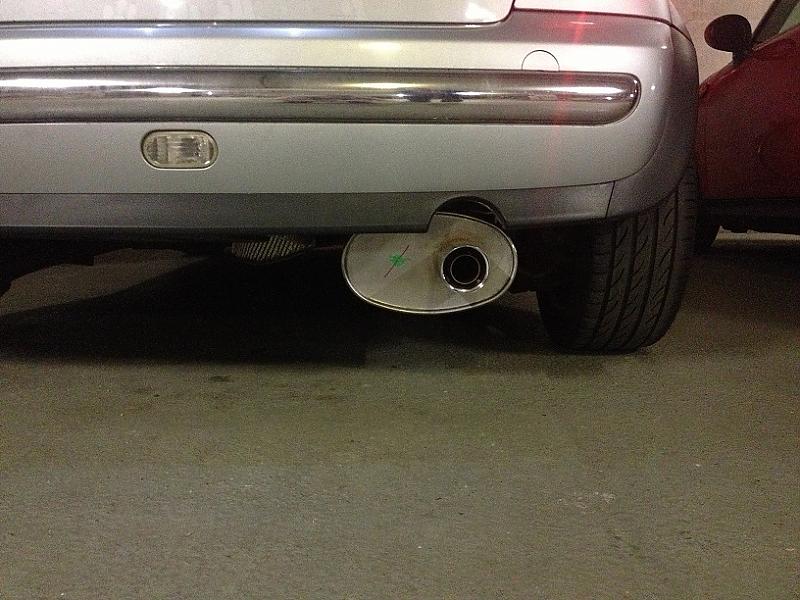 Mal angenommen er würde den Bügel vom Endtopf ganz ans Auto hoch schweißen, würde er immer noch zu tief sitzen.