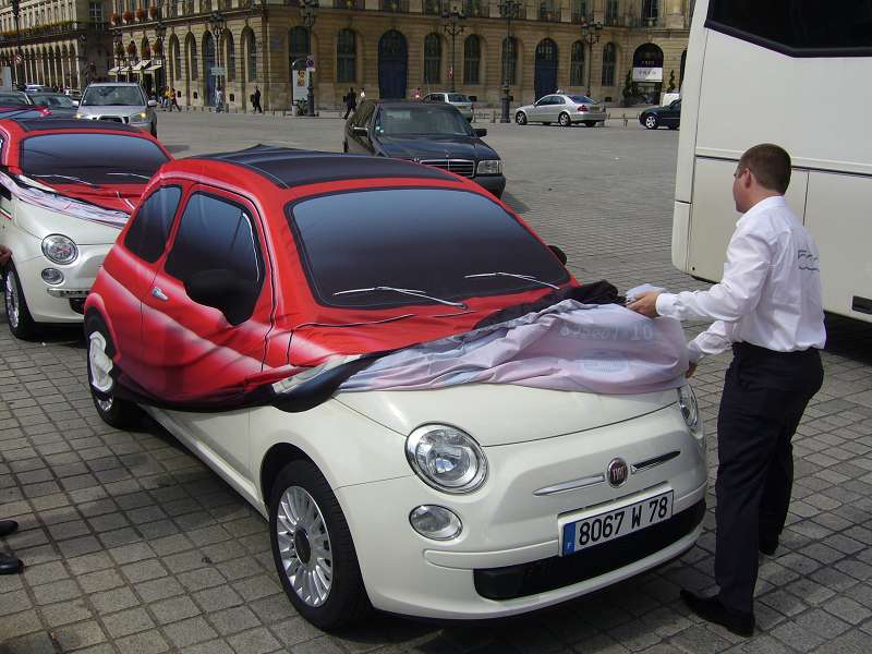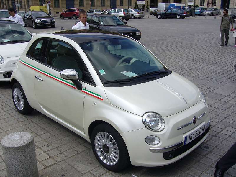 Fiat bietet auch viele Verschönerungsmöglichkeiten an, etwa diverse Streifen aufm Dach, Haube oder an der Seite.