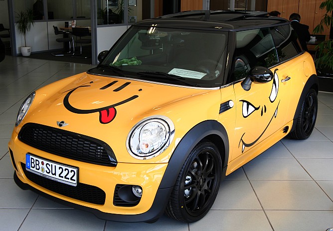Ich dachte mir, Mini in verschiedenen Farben bestellen kann jeder. Aussehen tun sie unterm Strich dann doch alle gleich. - Also ein roter mit weißem Dach (seeeehr cool!) sieht halt aus wie ein anderer roter mit weißem Dach...