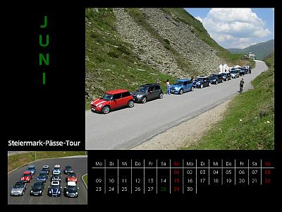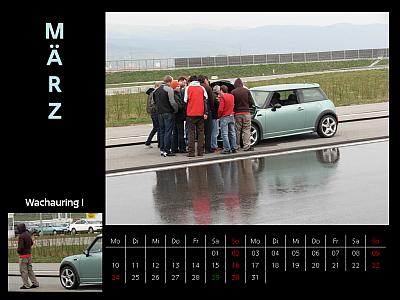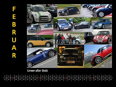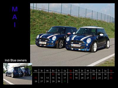 Das Format und das Design sind genauso außergewöhnlich wie unsere MINIs selbst. Die Größe ist etwas kleiner als das A4-Format, (österreichische) Feiertage sind rot und die CA-West-Stammtischtermine (einmal pro Monat) grün eingetragen. Doch liegt das Hauptaugenmerk sowieso auf den wunderschönen Kalenderbildern, die die Erlebnisse, Ausfahrten und Treffen des Jahres 2007 widerspiegeln.