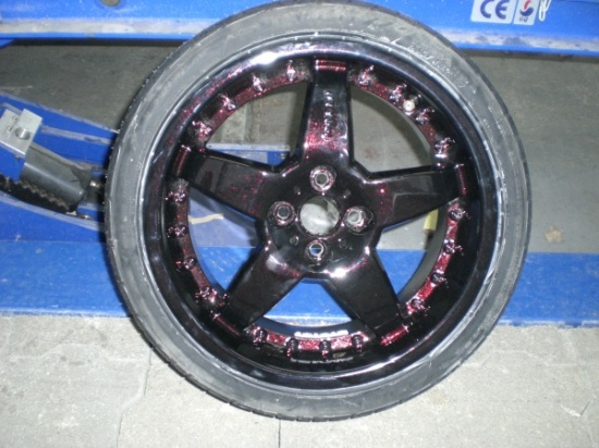 So, ich hab zwar meine "alten" Felgen, aber in einem schicken neuen Kleidchen! Damit wenigstens etwas mädchenhaft an meinem Auto ist mit rotem Glitzer