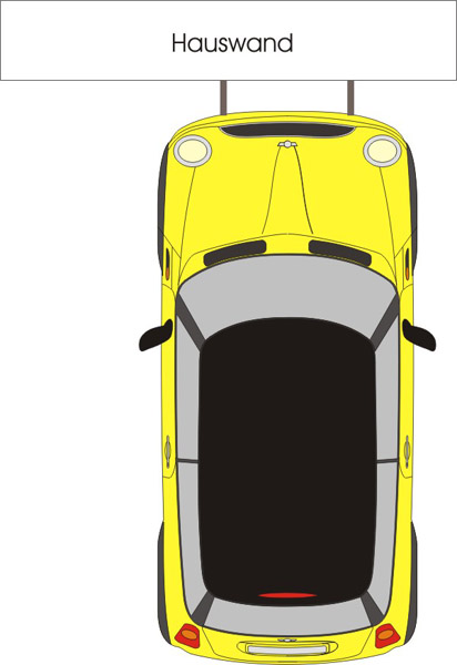 Roy hatte damals den MINI gegen die Hauswand gefahren und hat rechts und links am Grill jeweils eine Holzlatte zwischen Grill und Hauswand ungefähr so: