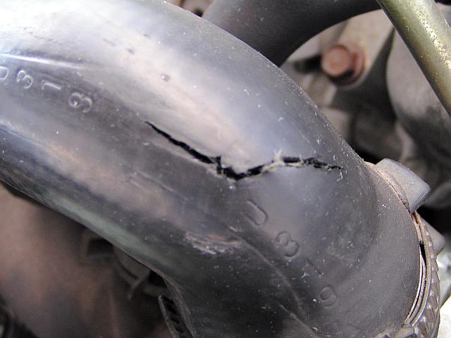 und das Loch bzw. der Riss so gut, wie möglich mit Isolierband abgedichtet. Danach ging es wieder mit höchstens 80 km/h und max. 1.900 Umdrehungen