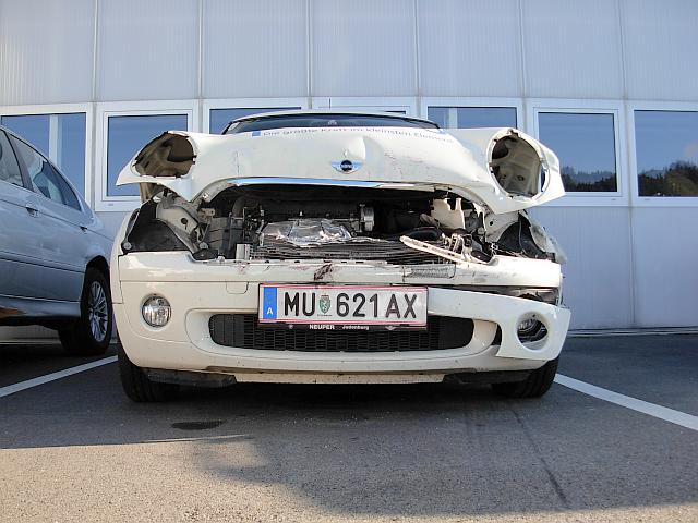 Wer sich noch an Schneckis Siesel erinnern kann, genau so dürfte es wohl dem Neosino-MINI ergangen sein. Er ist im geparkten Zustand von hinten angeschoben und an den davor geparkten Wagen gedrückt worden. Wahnsinn, wenn man diese Bilder sieht!