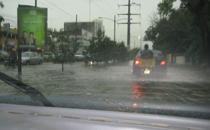 Das Fahren in Santo Domingo war der Knaller, dann kam auch noch nen Sturm und es stand alles unter Wasser, teilweise ca. 40cm hoch auf der Strasse (siehe Bilder; wobei es dort noch harmlos war; später konnten wir gar nicht mehr fotografieren, da man nix gesehen hat).