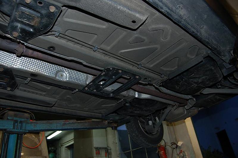 Weil es eine ältere Hebenühne war, hab ich auf einen Holzbalken fahren müssen, damit wir die Arme überhaupt drunter kriegen