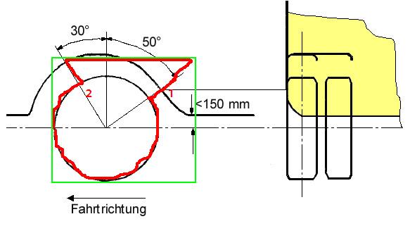 Dann die Schablone ans Rad halten und testen ob bei den Punkten 1 und 2 die Radabdeckung gegeben ist. Fertig