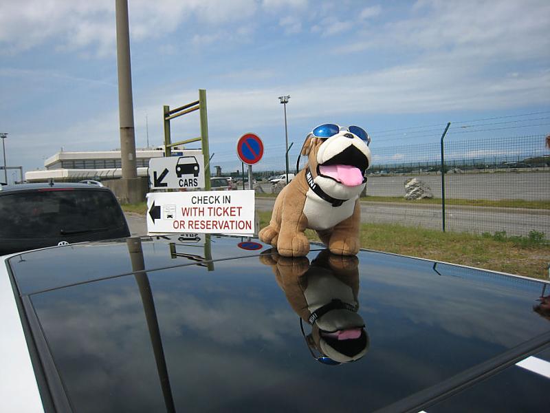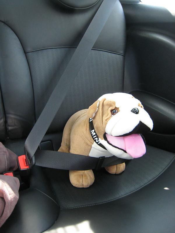 Ich fahre immer brav angeschnallt auf dem Rücksitz mit, manchmal auch auf Frauchen's Schoß, wenn sie Kuschelbedarf hat und so bin ich auch schon viel rumgekommen ... sogar letztens bis nach Silverstone