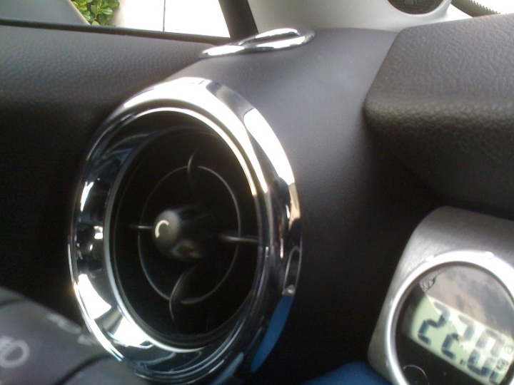 Foto linken Luftausströmer , hier kann man recht gut den zu kleinen Innendurchmesser erkennen .