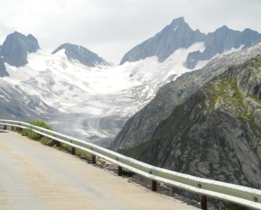 Wenn man die Strasse nach links ca. 1,5km weiterfährt und dann auf eine kleine Privatstrasse rechts abbiegt (Einbahnstrasse, jede Richtung nur einmal für 1/2Std. pro Stunde zu befahren), sieht diesen Gletscher: