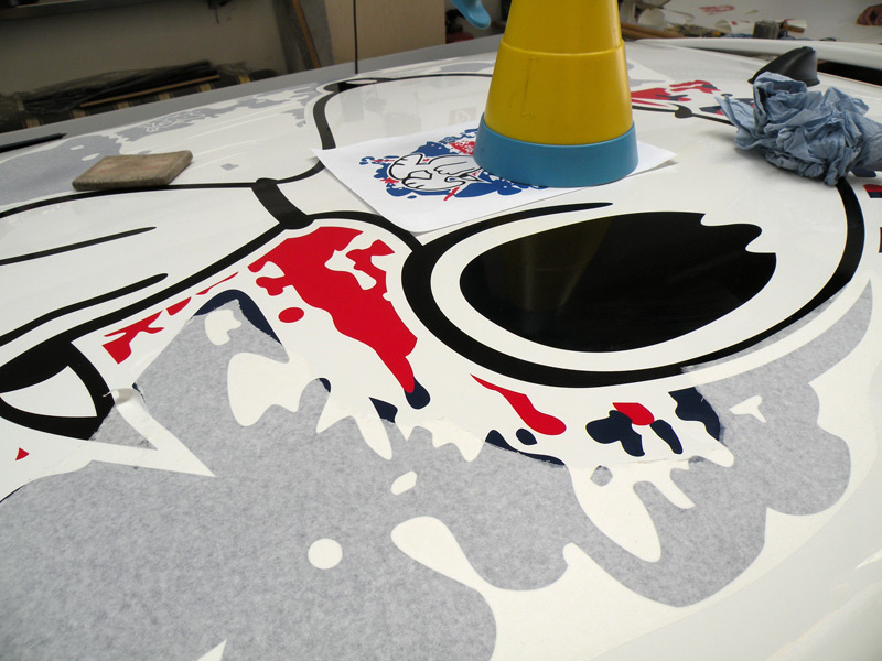 Das Motiv hat mir auch in geklebtem Zustand am Mini-MINI noch gefallen, also durfte der Experte ans Werk