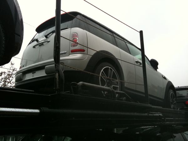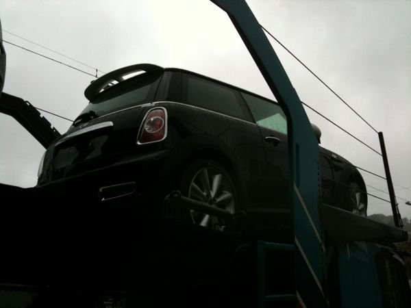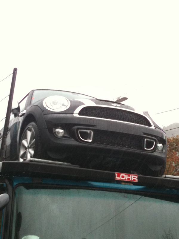 viel zu sehen gabs nicht: waren neufahrzeuge, abgeklebt, eng aufeinander gestanden auf einem lkw. habe versucht auch noch ein paar details (scuttels, nebelscheinwerfer, bremsenbelüftung) festzuhalten