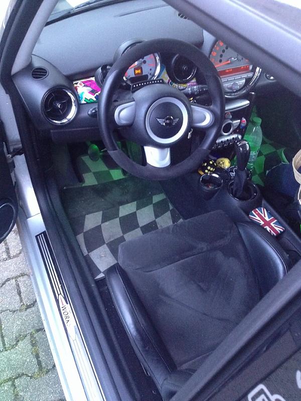 Vor den Winter hat er das JCW Alcantara Lenkrad bekommen