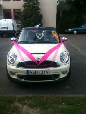 So da es ja leider gefühlt ewig dauert, bis ich unseren Mini zeigen kann, hier mal unser Hochzeitsmini. War gar nicht so einfach nen Verleiher zu finden, der nen Ivoryfarbenes (jaja ich weiß Pepperwhite, aber Ivory passt vom Namen besser zur Hochzeit) Cabrio zugesagt hat. Andere, ja es könnte auch ein 207CC werden. Auch ein schönes Auto, aber wir wollten doch das Mini Cab.