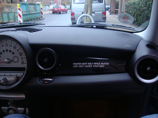 LED Tagfahrlicht, JCW Grill, schwarze LED-Nebelschlussleuchte, H&R Sportfedern 30/30, MINI Cooper SideStripes, weisse Bremssättel, JCW Carbonspoiler, weisse Rahmen um Front- & Heckleuchten