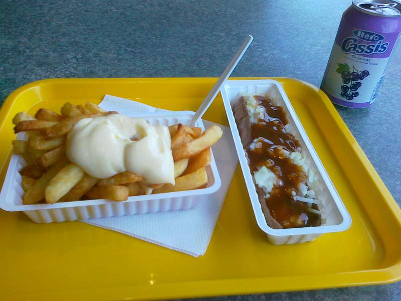 La Tatü schrieb:so 'ne komische fleisch-/tierrestewurst mit curry-ketchup, mayso und zwiebeln ...Die gute alte Pferdewurst