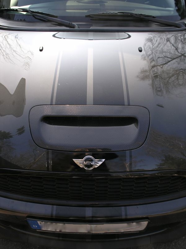 Die Bonnet Stripes wurden entfernt und durch 4 "Sport Stripes" ersetzt. Ich finde, dass dem Mini diese schwarzen Streifen besser stehen.