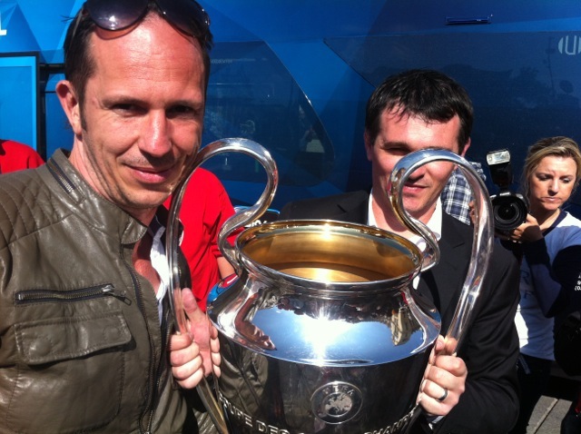 Heute am Stachus: Willy Sangol mit dem echten CL-POKAL: