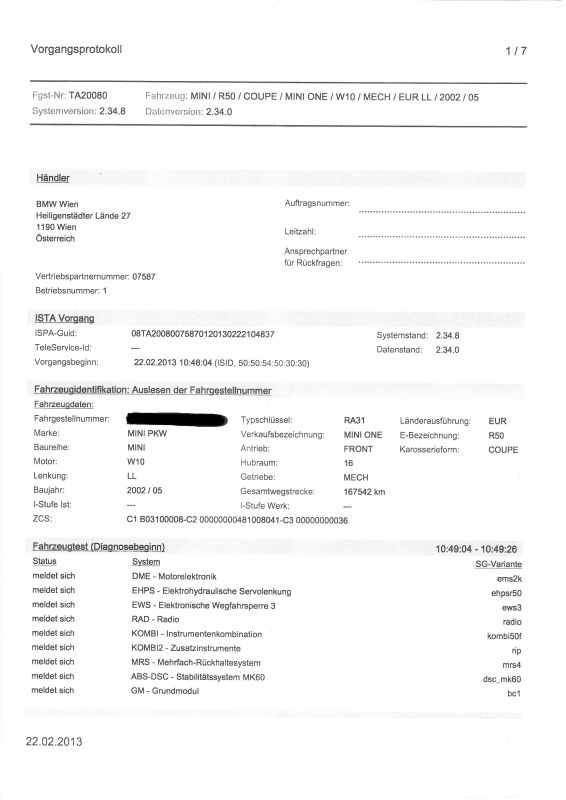 Nun zum Problem es sind 2 CAN Fehler ausgelesen worden wo der Mechaniker sagte ich soll den Mini zum Mechaniker bringen wo das Getriebe gemacht worden ist.