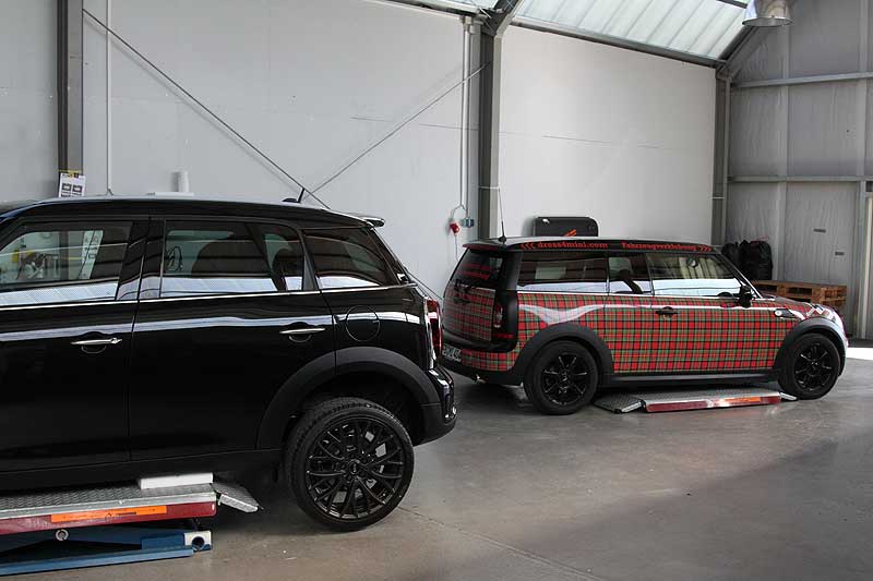 Vorab habe ich die Seitenblinker und die Rückleuchten gegen die Blacklinevarianten getauscht und mir JCW Räder in mattschwarz und 19 Zoll für den Sommer zugelegt. Zusätzlich wurden Spurverbreiterungen verbaut, vorn 10mm und hinten 12 mm je Seite.