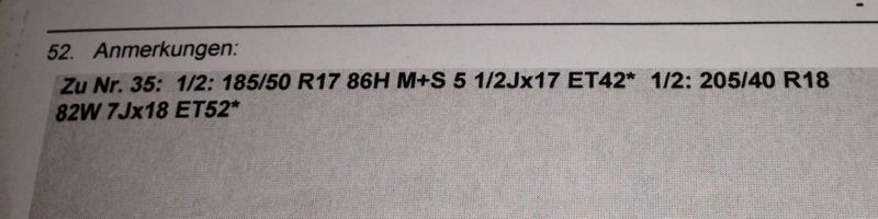 Und in der ist diese, unter Anmerkungen (Zu Nr.35) Reifen/Felgenkombination eingetragen.