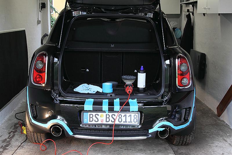 Btw, da es hier seit Samstag nonstop regnet, war ich Freitag mal wieder ordentlich waschen und habe den Wagen zwei Tage in der Garage eingeschlossen und Schönheitspflege betrieben. Das der Lack so empfindlich ist, durfte erstmal die Flex ran und einmal sanft polieren bitte.